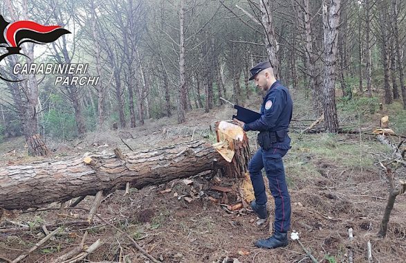 I Carabinieri Forestali della Stazione CC Parco di Portoferraio sono intervenuti in loc. Saglione del Comune di Capoliveri su lavori di taglio del bosco eseguiti all’interno del Parco Nazionale Arcipelago Toscano. Al momento del controllo il taglio, eseguito su una superficie di 1000 m2 circa, aveva già interessato n.13 esemplari di Pino Domestico (Pinus pinea) ed alcuni esemplari arbustivi della macchia mediterranea.