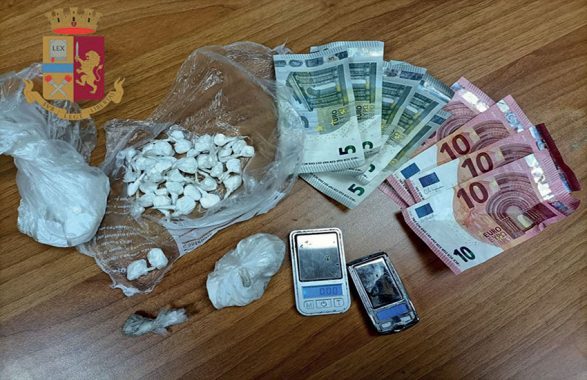 All’interno dei pantaloni della tuta indossati dal trentatreenne sono state rinvenute due dosi di cocaina e sul tavolo del soggiorno una dose di eroina ed un bilancino di precisione. In un mobile della camera da letto, sotto alcuni vestiti, all’interno di una scatola in cartone, gli agenti hanno recuperato 65 euro in banconote di diverso taglio, due involucri contenenti più di 40 dosi di cocaina ed una pietra di circa 20 grammi sempre di cocaina, oltre un involucro con della sostanza da taglio.