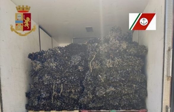 I poliziotti, unitamente ai militari della Guardia Costiera che già da tempo monitorava il litorale del Mar Piccolo, hanno fermato in strada Citrezze, nei pressi dei cantieri navali di Taranto, un furgone che trasportava al suo interno circa 2 tonnellate di mitili provenienti dal primo seno del Mar Piccolo di Taranto.