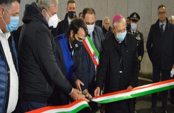 Alla cerimonia, che si è svolta in prossimità dell’uscita per via Cesare Battisti, hanno partecipato il presidente della Provincia Giovanni Gugliotti (l’opera fa capo proprio all’ente di Palazzo del Governo), il sindaco Rinaldo Melucci e il presidente della Regione Michele Emiliano. Presente anche l’Arcivescovo di Taranto Filippo Santoro (che ha impartito la benedizione sull’opera).