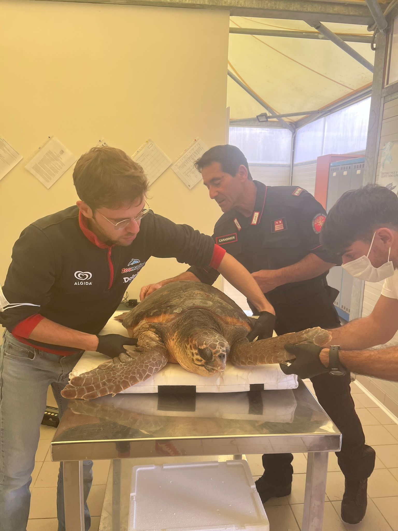 L’animale dopo il recupero è stato trasportato prima presso il CRAS di Fogliano per un esame preliminare e subito dopo, come richiesto dal referente dell’Associazione “TARTALAZIO”, consegnato al Centro di 1^ Soccorso Tartarughe Marine di Fondazione “ZOOMARINE” di Torvajanica per le cure del caso ed il recupero.