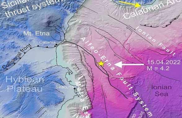 “Il terremoto di magnitudo 4.2 registrato alle 3.34 della scorsa notte dalla rete sismica dell’Ingv, ad una profondità di 33 km al largo della costa ionica tra Catania e Siracusa è stato causato dalla riattivazione della faglia Alfeo-Etna, una enorme struttura sismogenetica ubicata nel mar Ionio occidentale”. Lo ha affermato il prof. Carmelo Monaco del Dipartimento di Scienze Biologiche Geologiche e Ambientali dell’Università di Catania, uno degli autori di una ricerca focalizzata proprio su questa struttura tettonica. Lo studio – dal titolo “Transtension at the Northern Termination of the Alfeo-Etna Fault System (Western Ionian Sea, Italy): Seismotectonic Implications and Relation with Mt. Etna Volcanism” – è stato pubblicato il 10 marzo scorso sulla rivista internazionale “Geosciences” e porta la firma dei ricercatori Salvatore Gambino, Giovanni Barreca, Giorgio De Guidi, Carmelo Ferlito e Carmelo Monaco dell’Università di Catania, Valentina Bruno, Mario Mattia e Luciano Sarfì dell’Osservatorio Etneo dell’Ingv e Felix Gross dell’Institute of Geosciences e Center for Ocean and Society di Kiel University in Germania.