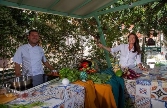 Nella foto: Tessa Gelisio e Antonio Cicero, chef de Il Consiglio di Sicilia di Donnalucata