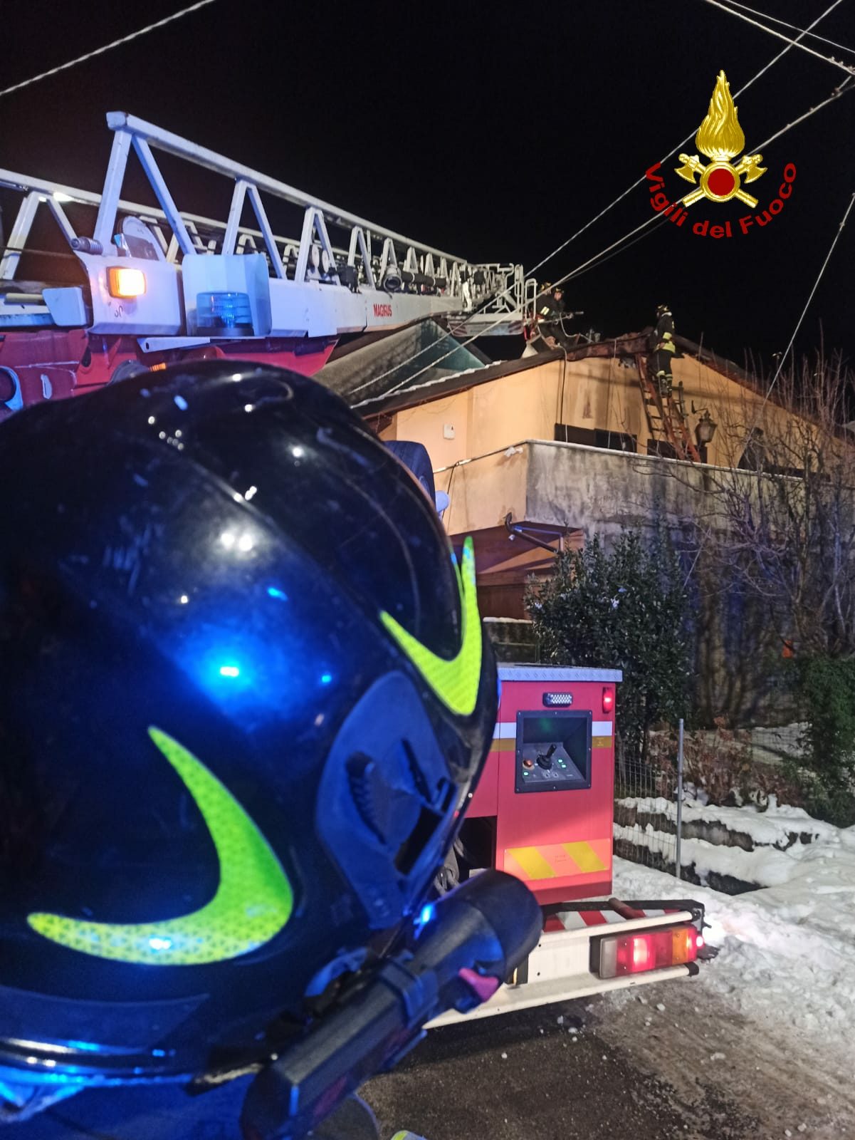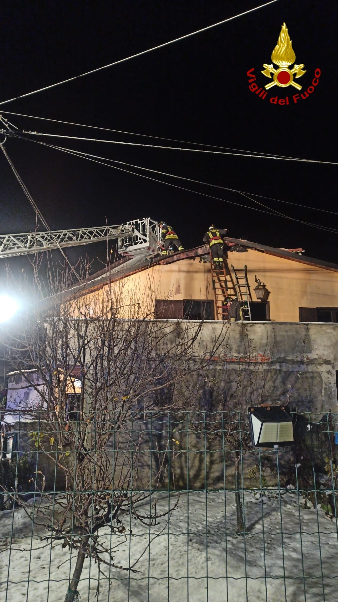 Sul posto dei volontari del luogo. Impiegata anche l’autoscala per raggiungere in sicurezza la falda del tetto dell’abitazione.
