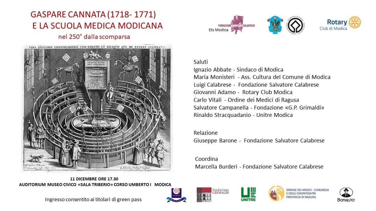 Con lui e dopo di lui, una generazione di talentuosi clinici e chirurghi (da Giorgio Giannone Castagna a Michele Gallo e a Socrate Polara) ha consolidato nel tempo la fama e la fiducia verso un gruppo di professionisti di alto profilo che ebbero continue relazioni con le istituzioni sanitarie europee e che riuscì a trasformare l’antico Ospedale della Pietà a Modica in un centro all’avanguardia nella diagnosi e trattamento di numerose malattie. A tracciare la biografia di Cannata e le coordinate culturali dell’ambiente medico del Settecento modicano sarà il prof. Uccio Barone, Emerito di Storia Contemporanea e coordinatore scientifico della Fondazione “Salvatore Calabrese” presieduta dal dott. Luigi Calabrese, che si è costituita di recente allo scopo di coniugare la tradizione scientifica della Contea con la ricerca interdisciplinare sui Beni Culturali del territorio ibleo.