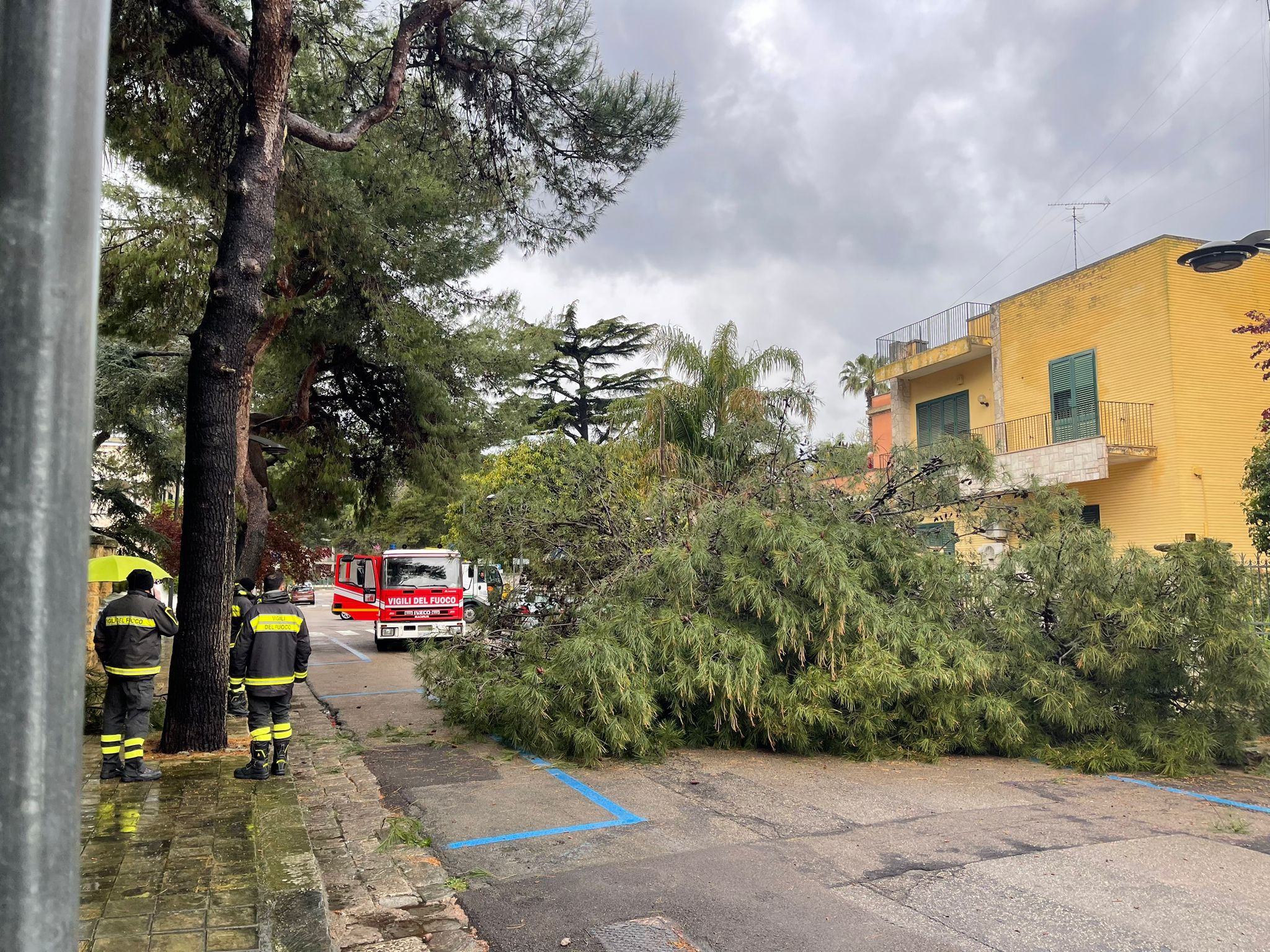 Altra tragedia sfiorata in città è quella che si è registrata, come detto, in via Gentile. Anche in questo caso si è dovuti intervenire intorno alle 8 di questa mattina, ma le conseguenze di quanto avvenuto potevano essere ben più drammatiche. Un grosso albero di pino è caduto ed è finito rovinosamente sull’asfalto, rischiando di travolgere un uomo che portava a spasso il suo cagnolino. Attimi di grande paura e tensione, ma nessun ferito anche in questo caso. Sfiorata anche un’auto che era parcheggiata nelle vicinanze. Anche in questo caso sono intervenuti i vigili del fuoco e la polizia locale, oltre agli operatori della Lupiae. L’intervento di rimozione è durato parecchio tempo ed il tratto di strada è stato riaperto al traffico solo poco prima delle 10.