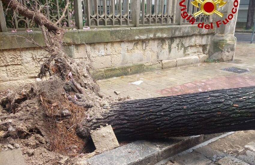 Siamo molto vicini all’estate, ma del bel tempo ancora non c’è ombra. Anzi, è da giorni che il maltempo imperversa nel Salento. Tragedia sfiorata in città proprio a causa delle avverse condizioni metereologiche che, come è già avvenuto in passato e anche recentemente, hanno provocato la caduta di un albero, già pericolante, che ha rischiato davvero di fare danni pesantissimi. Una squadra dei vigili del fuoco del comando provinciale di Lecce, infatti, intorno alle ore 14.10 circa di oggi pomeriggio, è intervenuta nel capoluogo salentino, esattamente in via Casotti, a causa della caduta di un albero ad alto fusto appartenente alla specie “pino domestico”. Quest’ultimo è precipitato al suolo occupando l’intera sede stradale. I caschi rossi hanno provveduto alla rimozione ed al taglio di alcuni rami pericolanti di un secondo albero posizionato nelle vicinanze di quello caduto. Gli stessi operatori, infine, hanno messo in sicurezza la zona in attesa del ripristino dei luoghi da parte del comune di Lecce.