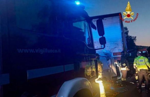 Quest’ultimo, che proseguiva nella stessa direzione di marcia, ha impattato violentemente sulla parte posteriore del mezzo pesante.