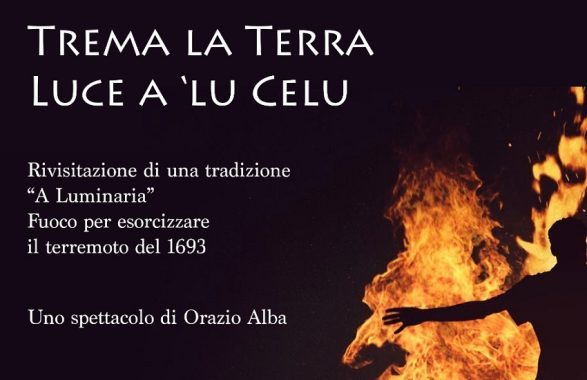 S’intitola “Trema la terra, luce a lu celu” lo spettacolo di Orazio Alba che, col patrocinio del Comune di Caltagirone, sarà proposto sabato 12 marzo, alle 19, nella Vecchia Pescheria di Caltagirone, con ingresso gratuito. Si tratta della rivisitazione di una tradizione, “A Luminaria”, con l’uso del fuoco per esorcizzare il terremoto del 1693.