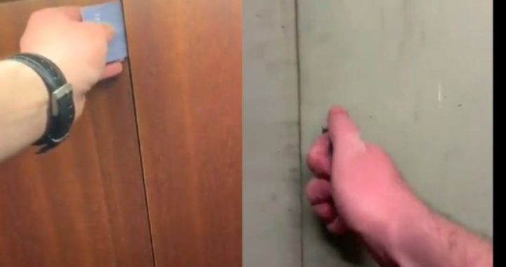 Il ragazzo ha girato un video dove fa una panoramica completa della stanza d’albergo. Ad una prima occhiata sembra tutto in ordine ma poi, quando apre il primo armadio, scopre che ce n’è un secondo senza maniglie che riesce ad aprire con l’aiuto di una carta.