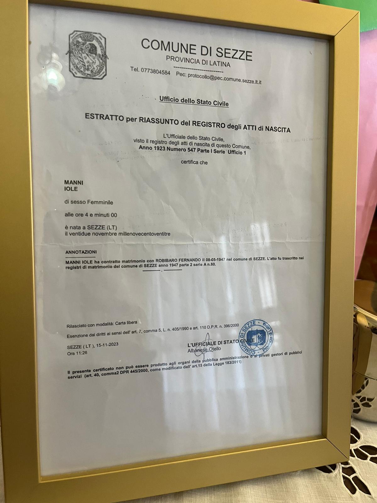Nonna Iole è stata raggiunta dall’amministrazione comunale di Sezze, con il consigliere Federica Pecorilli che è andata a trovarla a Latina, omaggiandola con un mazzo di fiori.