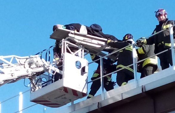 Gli uomini in rosso sono intervenuti mediante l’utilizzo dell’autoscala grazie alla quale il ferito veniva recuperato, dopo essere stato stabilizzato dai personale sanitario, e portato a terra per poi essere preso in consegna dal 118. Sul posto, per le proprie competenze, polizia di stato.