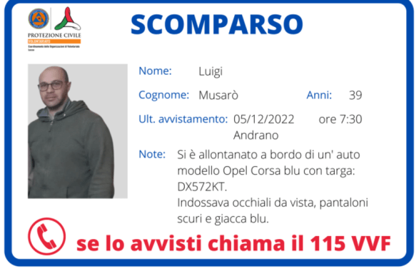 Emergono nuovi dettagli sul caso dell’uomo scomparso nel Salento. E, purtroppo, non sono per nulla confortanti. Ormai si teme il peggio per le sorti di Luigi Musarò, il 39enne di Andrano, di cui non si hanno più notizie da ieri mattina. Erano le sette del mattino quando l’uomo si è allontanato dalla propria abitazione facendo perdere le proprie tracce e non dando più notizie di sé. Inquietudine e preoccupazione hanno subito preso il sopravvento dei parenti stretti, della fidanzata e di chiunque lo conosceva. Le ricerche dell’uomo scomparso nel Salento si sono attivate nel tardo pomeriggio di ieri, quando i familiari ne hanno denunciato la scomparsa attivando così vigili del fuoco e forze dell’ordine, coadiuvati nelle operazioni anche dalle unità cinofile. La speranza è di ritrovare Luigi e, dopo essere andate avanti per l’intera notte, le ricerche sono proseguite nella giornata di oggi, quando sono avvenute due cose importanti.