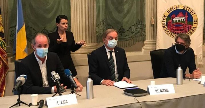 Questa mattina, a Palazzo Giuliari, il Sindaco, il rettore dell’Università degli studi di Verona Pier Francesco Nocini e il Presidente della Regione del Veneto Luca Zaia hanno presentato tutti gli aggiornamenti sugli studi scientifici condotti dall’ateneo scaligero negli ultimi mesi. Dalla diagnostica alla terapia fino ad arrivare alla recente collaborazione con lo Spallanzani di Roma per la sperimentazione sull’uomo di Grad-CoV2, il candidato vaccino italiano contro SARS-CoV-2, il virus che causa Covid-19.