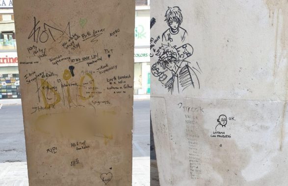 Durante un servizio di controllo del territorio, i militari denunciavano cinque ragazze fermate dai militari mentre imbrattavano, scrivendo con pennarelli indelebili, i muri dell’edificio.