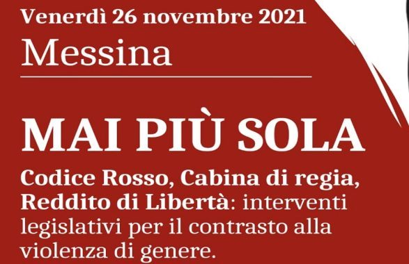 Si svolgerà venerdì 26 novembre alle ore 16 nella Chiesa di Santa Maria Alemanna a Messina il convegno “Mai più sola: Codice Rosso, Cabina di Regia, Reddito di Libertà: interventi legislativi per il contrasto alla violenza di genere”. L’evento sarà aperto dalla Sottosegretaria di Stato al Ministero Giustizia, Anna Macina, che già dalla mattina si troverà in visita ufficiale a Messina.