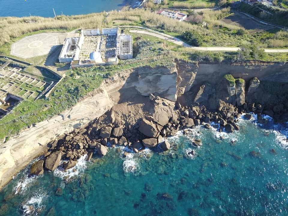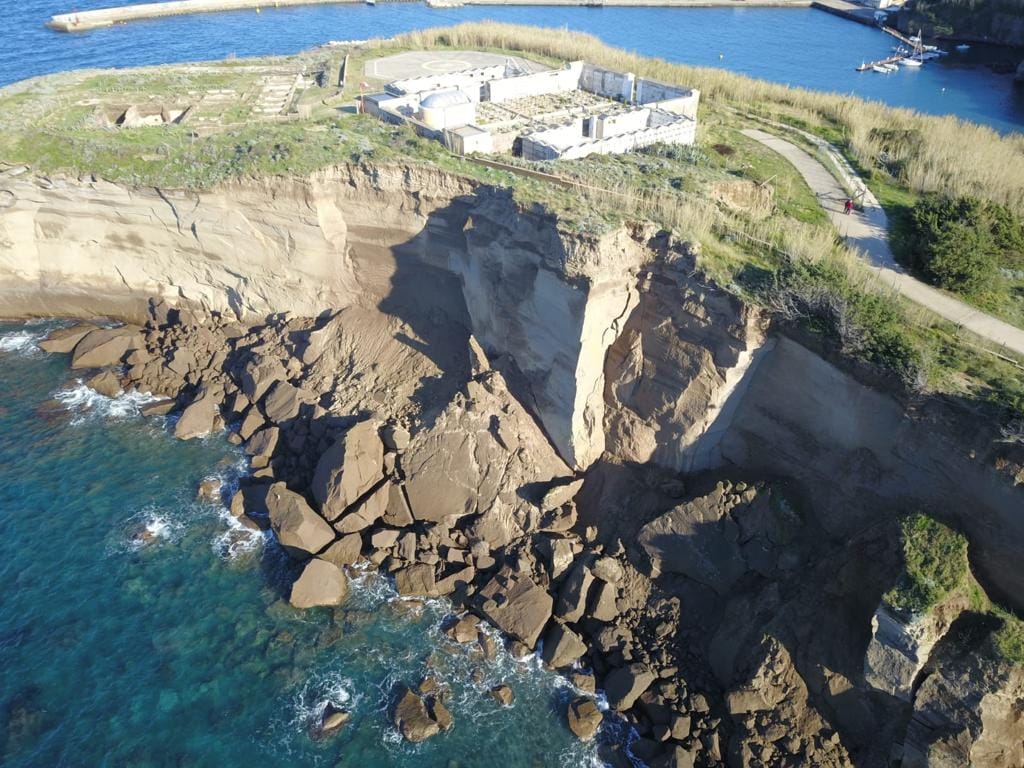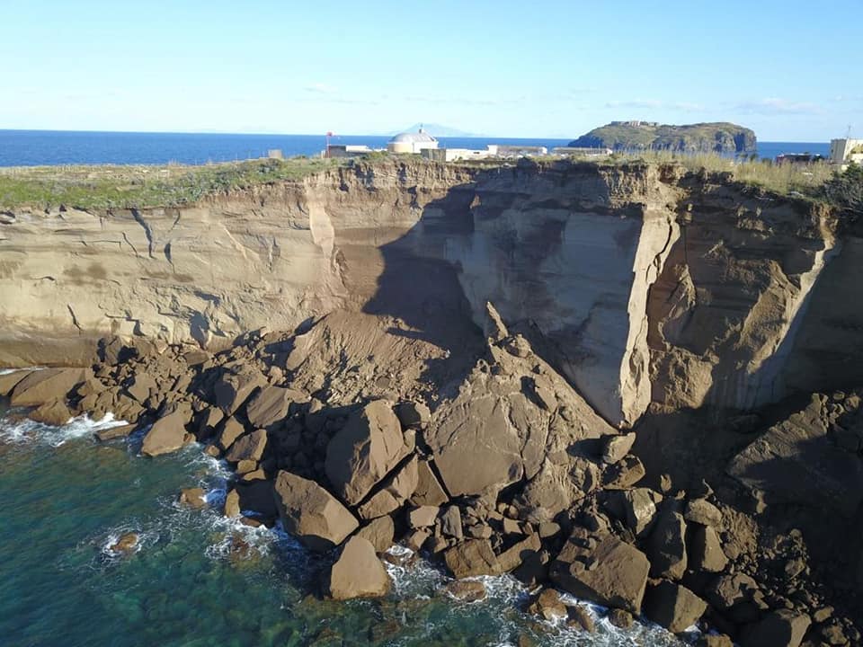 Un pezzo di costone, in tufo, è crollato in mare. Le immagini risalgono ad un paio di giorni orsono e testimoniano di come il cimitero della piccola isola sia quasi stato risucchiato nel crollo.