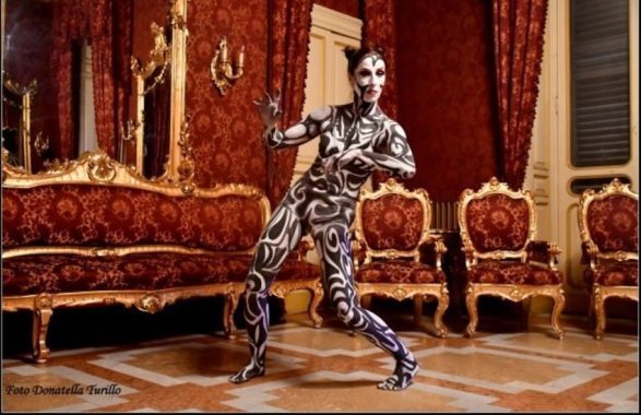 La Danza Butoh, danza contemporanea che predilige la sua teatralità emozionale, al gesto coreografato, ha senza dubbio una grande forza scenica, cosa che la coreografa e danzatrice Valeria Geremia ha accentuato decorando totalmente il suo corpo, aggiungendo preziosità alla performance. Per ogni dimora si realizzerà un decoro con scrupolosa precisione, con textures e colori che si armonizzino con la sala selezionata per la performance, con la volontà di ritrovare un gusto poetico che la manualità artigianale potrà regalare, il desiderio di accompagnare le sempre nuove tendenze digitali con la fattura del pennello e dei colori. Il corpo decorato con le loro movenze lente, fluide ed a tratti energeticamente potenti, si fonderanno con i maestosi scenari delle dimore storiche selezionate. Le architetture, i decori, gli intarsi e le geometrie ricche di poetica delle sale che utilizzeremo per l’evento, costituiranno la cornice, o meglio ancora l’ambiente dove le scene dei corpi in movimento si svilupperanno.