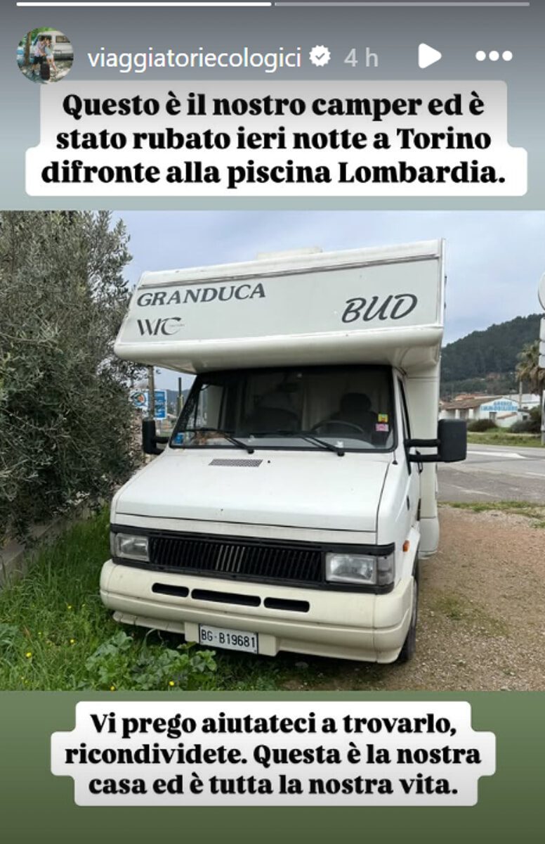 Purtroppo, proprio a Torino, il camper è stato rubato. “Abbiamo lasciato il nostro camper incustodito per tre giorni e ce l’hanno portato via”, racconta in lacrime Valentina in un video pubblicato su Instagram.