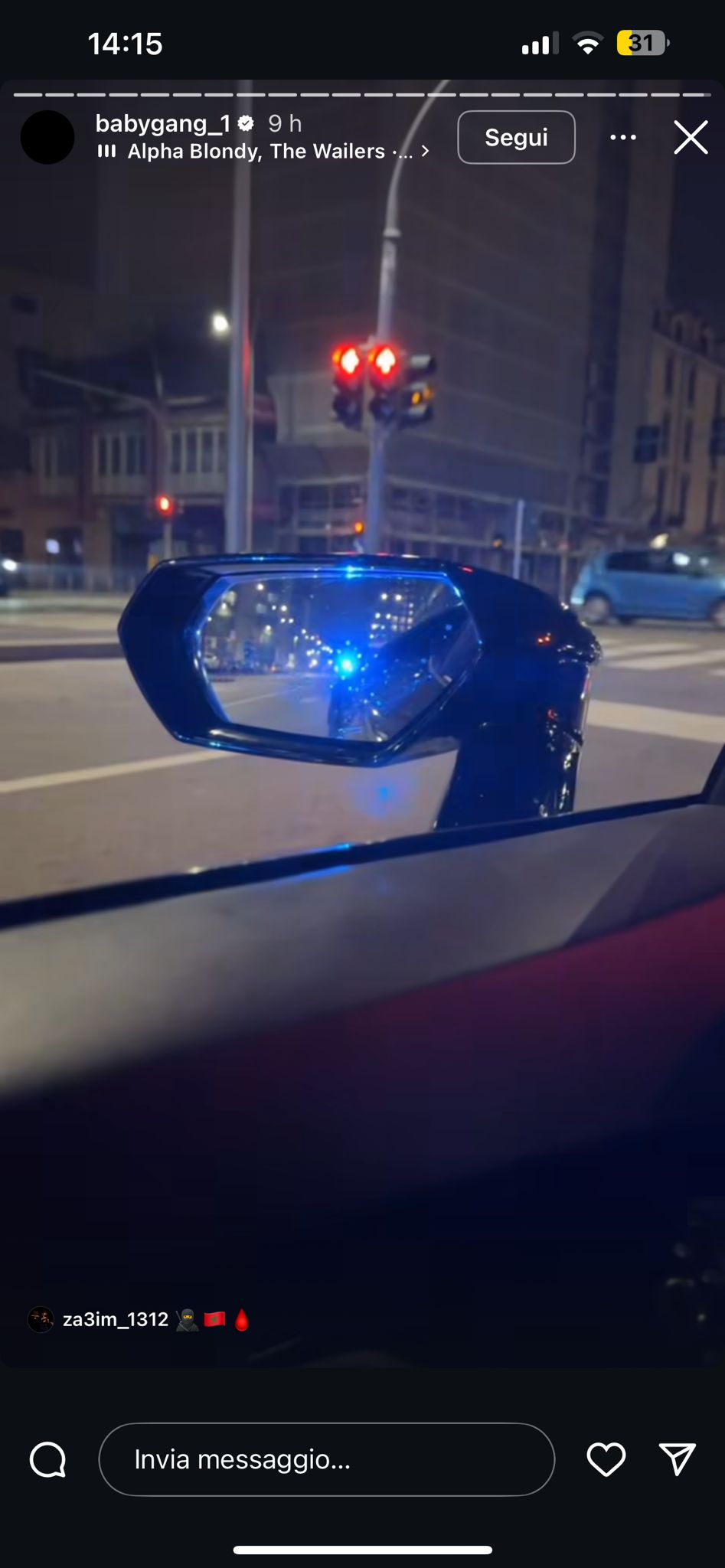 Il controllo è stato ripreso dallo stesso Baby Gang e postato in una story sul suo profilo Instagram. Nel video si vede il rapper che indossa un passamontagna al volante della Lamborghini, mentre dallo specchietto retrovisore si scorgono i lampeggianti di una volante dei Carabinieri.
