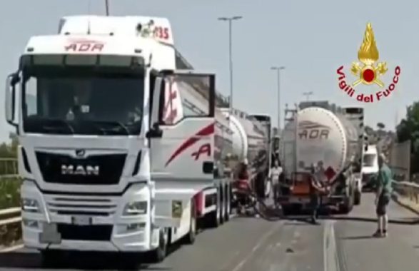 Si sono concluse infatti poco dopo le 12 le operazioni di travaso dell’alcool benzilico contenuto dentro la cisterna, che per oltre un’ora hanno costretto i Vigili del Fuoco del Distaccamento Sud Comando Provinciale di Catania a chiudere il tratto della Tangenziale in questione sia in direzione nord che in direzione sud.