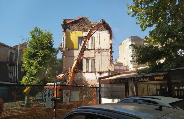 Lo scorso lunedì 4 luglio hanno avuto inizio nello spazio compreso tra via Lago di Nicito, via Plebiscito e via Castromarino a Catania i lavori di messa in sicurezza della palazzina crollata il 20 gennaio del 2020 durante le operazioni di scavo della galleria della tratta della metropolitana Stesicoro-Palestro. Le ruspe e i mezzi pesanti sono quindi in azione per buttare giù le parti ritenute pericolanti del palazzo e la messa in sicurezza, come detto dal direttore generale della Ferrovia Circumetnea, Salvatore Fiore, saranno propedeutici alla ripresa, a partire dal prossimo autunno, dei lavori di scavo della galleria della metropolitana in prossimità della vicina fermata Stesicoro. Questo chiaramente ha comportato la chiusura al traffico del tratto di via Lago di Nicito che va dall’incrocio con via Roccaromana allo sbocco su via Plebiscito.
