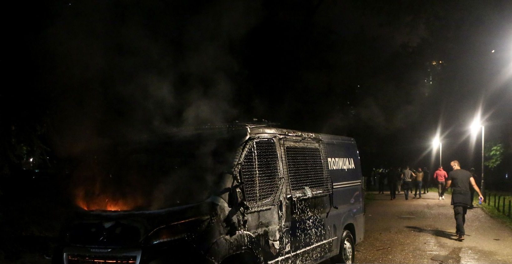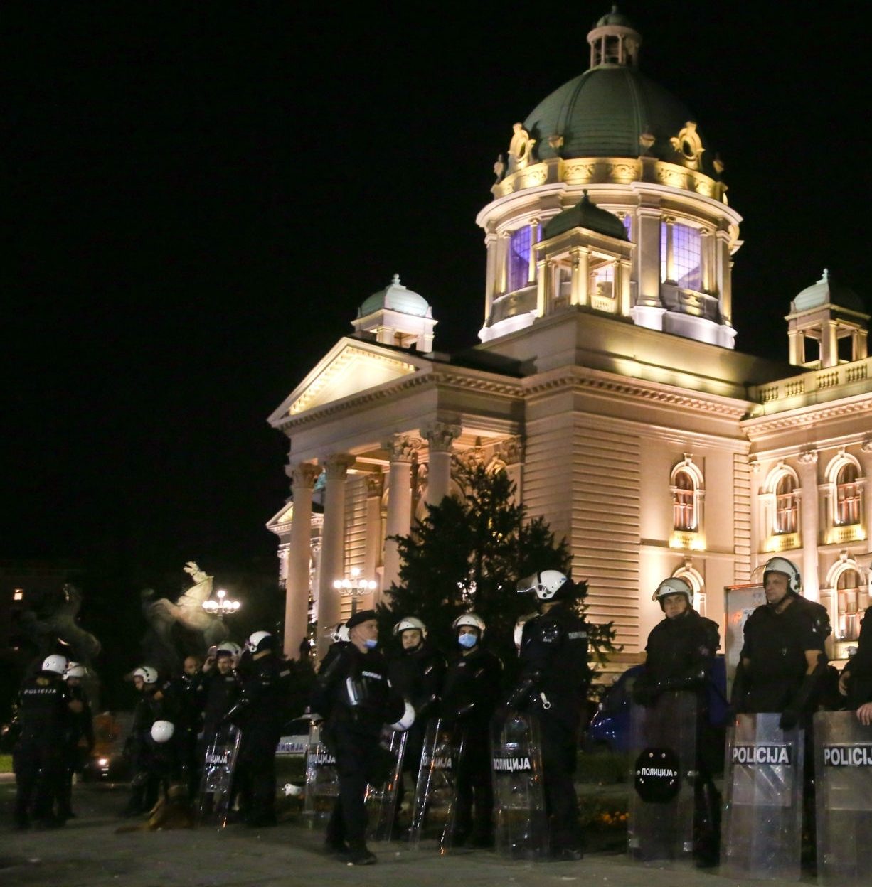 Dopo essere stati respinti coi lacrimogeni dall’ingresso della Camera, che hanno tentato a più riprese di forzare per fare irruzione nell’edificio, i manifestanti hanno ripiegato nelle strade e nel parco circostante dove, vicino alla Chiesa di San Marco hanno dato fuoco a tre auto della polizia. Incendiati anche diversi cassonetti dei rifiuti. Dopo un gran numero di lanci di sassi, bottiglie, petardi e altri oggetti, gli agenti in assetto antisommossa hanno risposto con ripetuti lanci di lacrimogeni, formando cordoni a difesa dell’area intorno al parlamento.