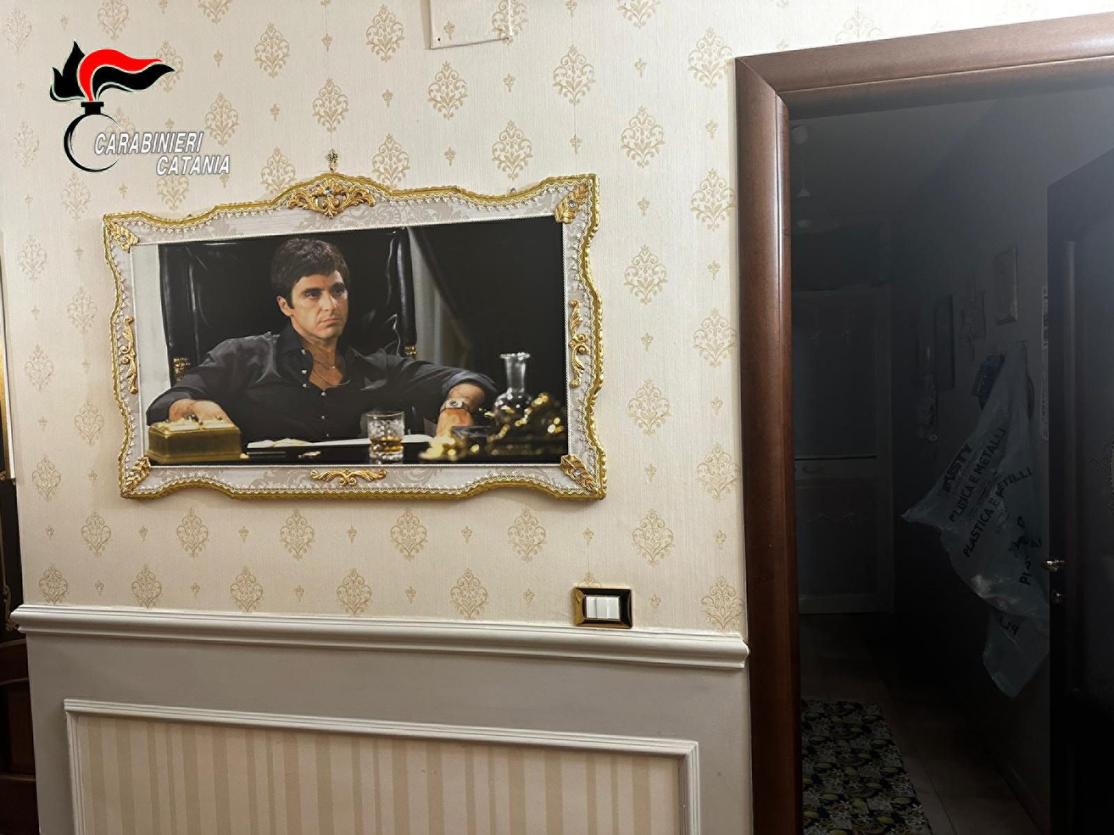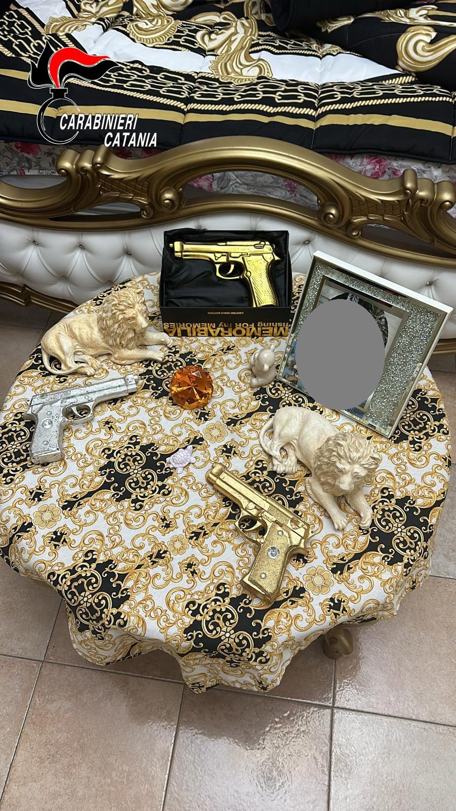 A tal riguardo va evidenziato che proprio a margine di alcuni di questi momenti di fibrillazione venivano condotte delle attività di riscontro e controllo e, in particolare in data 19 ottobre 2022, i Carabinieri del Nucleo Investigativo di Catania traevano in arresto in flagranza per il delitto di “detenzione illegale di armi e munizioni”, un 35enne catanese già noto alle Forze dell’Ordine e intraneo al “gruppo Nizza” della famiglia “Santapaola-Ercolano”. Nel frangente i militari fermavano l’uomo in viale Moncada, ove veniva trovato in possesso di un revolver Franchi, con caricatore inserito e 9 colpi calibro 38 special all’interno, nascosto nella cinta dei pantaloni. Nel medesimo contesto, gli operanti effettuavano perquisizione all’interno di un locale destinato alla raccolta dei terminali della rete fognaria di due scale di una stessa palazzina, ove rinvenivano 5 fucili da caccia, di cui tre cd “a canne mozze”, poiché artigianalmente modificati, 1 pistola mitragliatrice di provenienza cecoslovacca, 1 pistola mod. Glock modificata, 352 munizioni di vaio calibro, circa 6 chilogrammi di hashish suddiviso in panetti, un giubbotto antiproiettili, un lampeggiante blu per auto, vari kit per la pulizia delle armi e svariato materiale per travisamento, tra cui scaldacollo e guanti in pile.