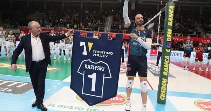 L’Itas Trentino ritira la maglia numero 1. Prima dell’inizio della gara tra Itas Trentino e Allianz Milano, il Presidente Da Re ha consegnato simbolicamente a Matey Kaziyski il gonfalone raffigurante una divisa stilizzata col suo numero e cognome. A partire dal mese di febbraio troverà posto sul tetto della ilT quotidiano Arena accanto a tutte le vittorie raccolte in questi primi ventiquattro anni di attività da Trentino Volley. Il momento, intenso e toccante al tempo stesso, è stato accompagnato da un lungo applauso e da una standing ovation generale, che ha commosso non solo i tifosi presenti di vecchia e nuova data ma anche lo stesso giocatore.