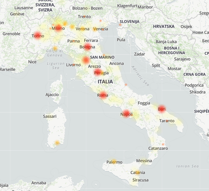 Come si può evincere dalla mappa presente su Downdetector, i guasti e i malfunzionamenti riguardano tutto lo Stivale e principalmente le grandi città come Bari, Napoli, Roma, Bologna, Torino e Milano.