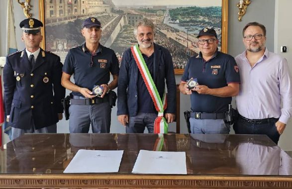 Questa mattina, il Sindaco di Terracina Francesco Giannetti e il Presidente del Consiglio Comunale Luca Caringi hanno accolto al Palazzo Comunale gli Assistenti Capo Coordinatori della Polizia di Stato Francesco Baccari e Andrea Stella. L’incontro è stato organizzato per ringraziarli a nome della città e conferire loro un attestato di encomio per il loro eroismo.